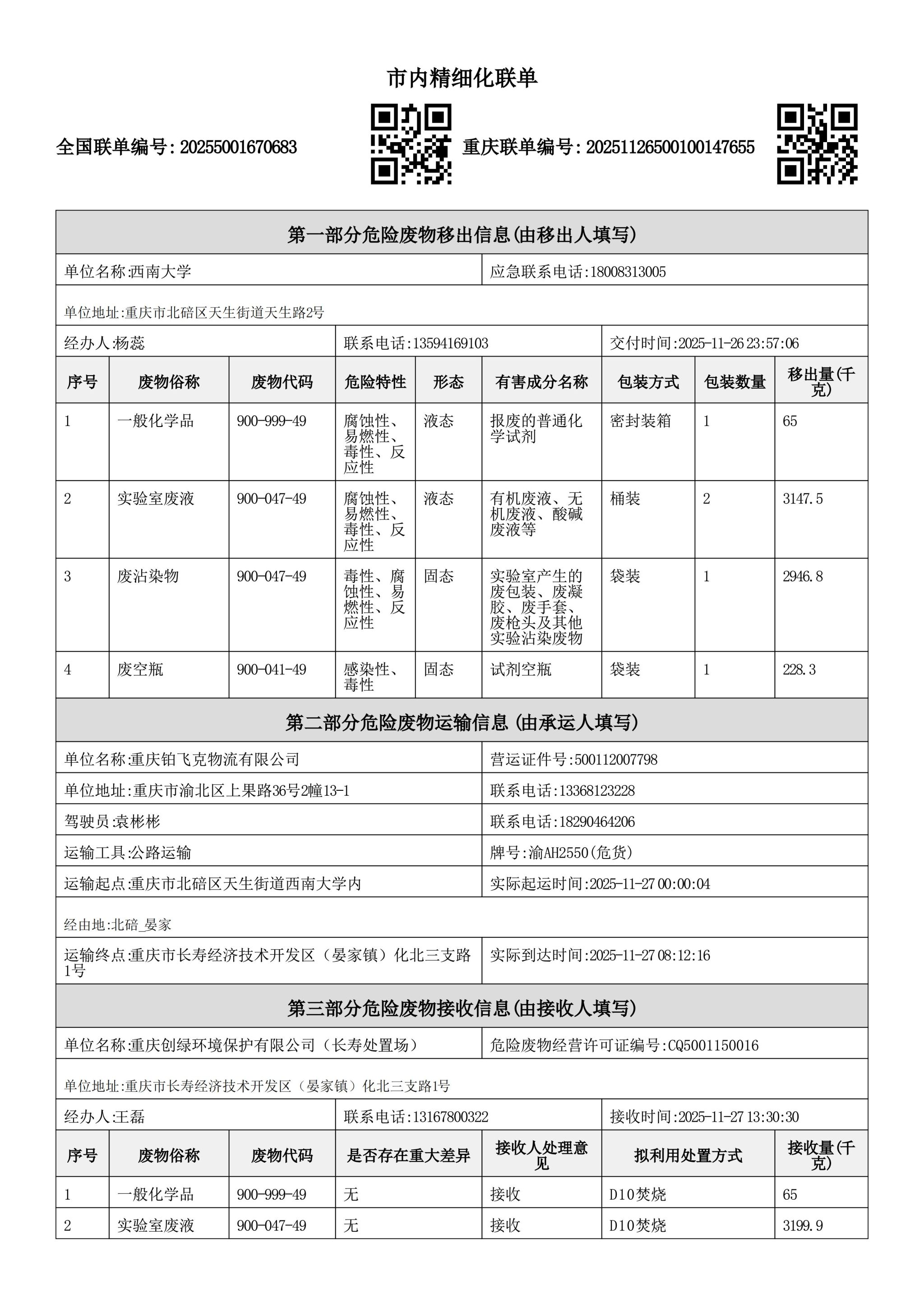 2025年第20期实验室废弃物规范处置信息公开