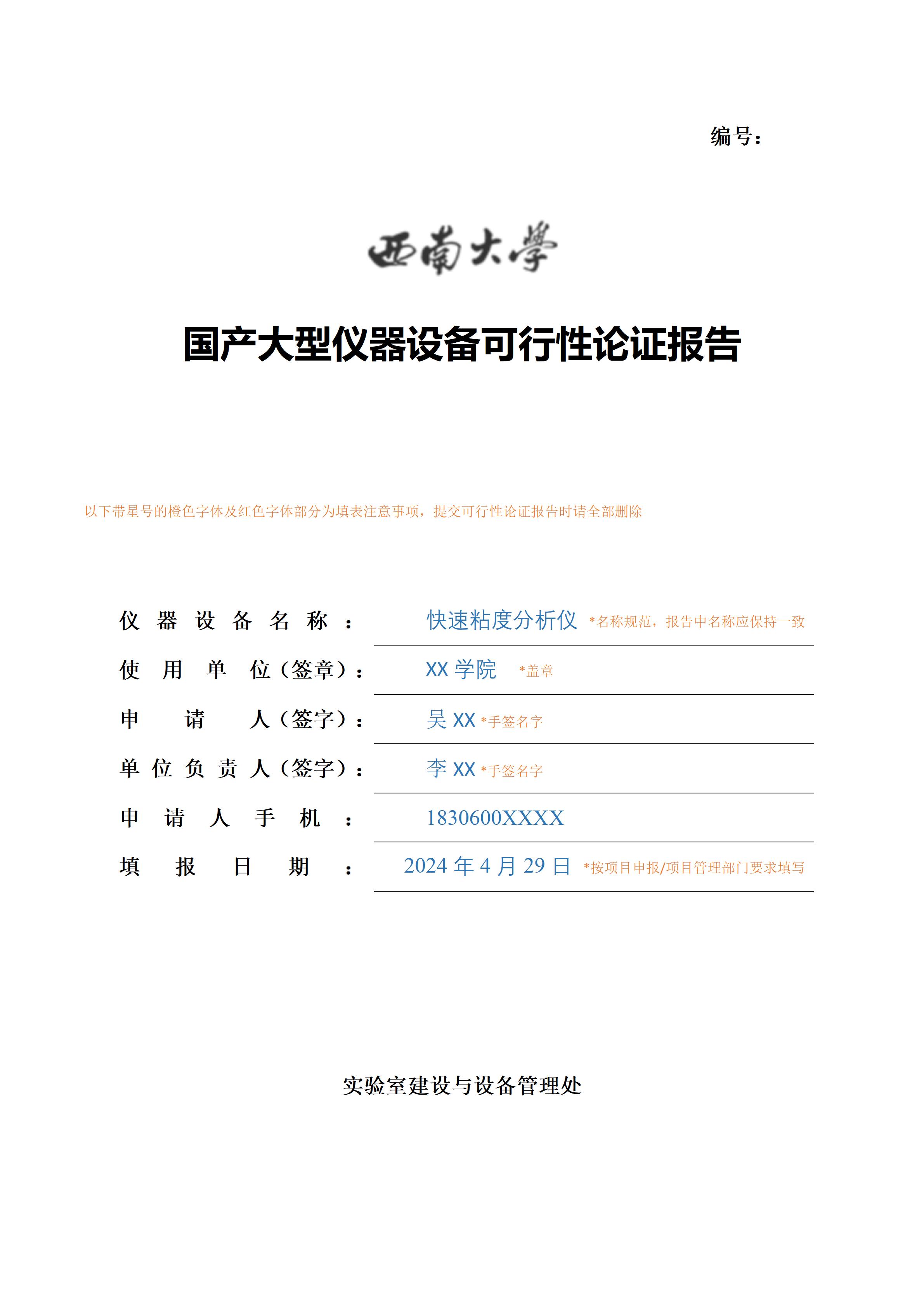 大型仪器设备可行性论证报告——(填报参考模板2025)