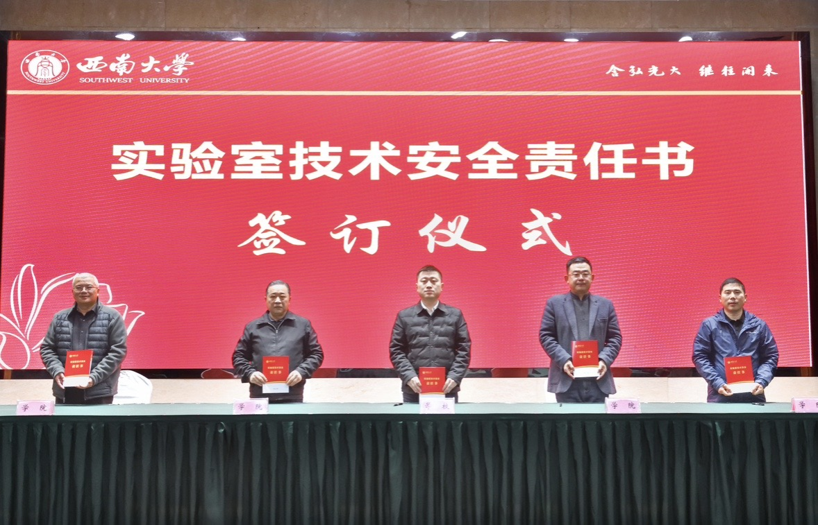 会上,实验室建设与设备管理处处长卢坤通报了学校近期实验室安全自查自纠情况,并就下一阶段实验室安全重点任务作了部署。范大明代表学校与各二级单位负责人现场签订了《西南大学实验室技术安全责任书》。