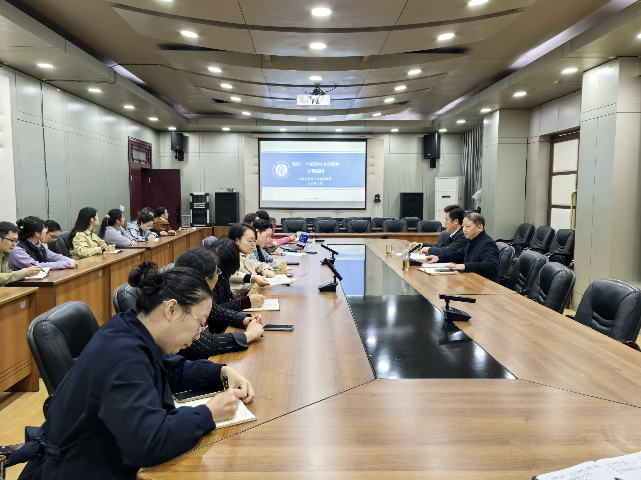 11月7日上午,实验室建设与设备管理处在文俊楼311会议室组织开展了2025年第十次教职工政治理论学习,彭红军副处长主持学习。
