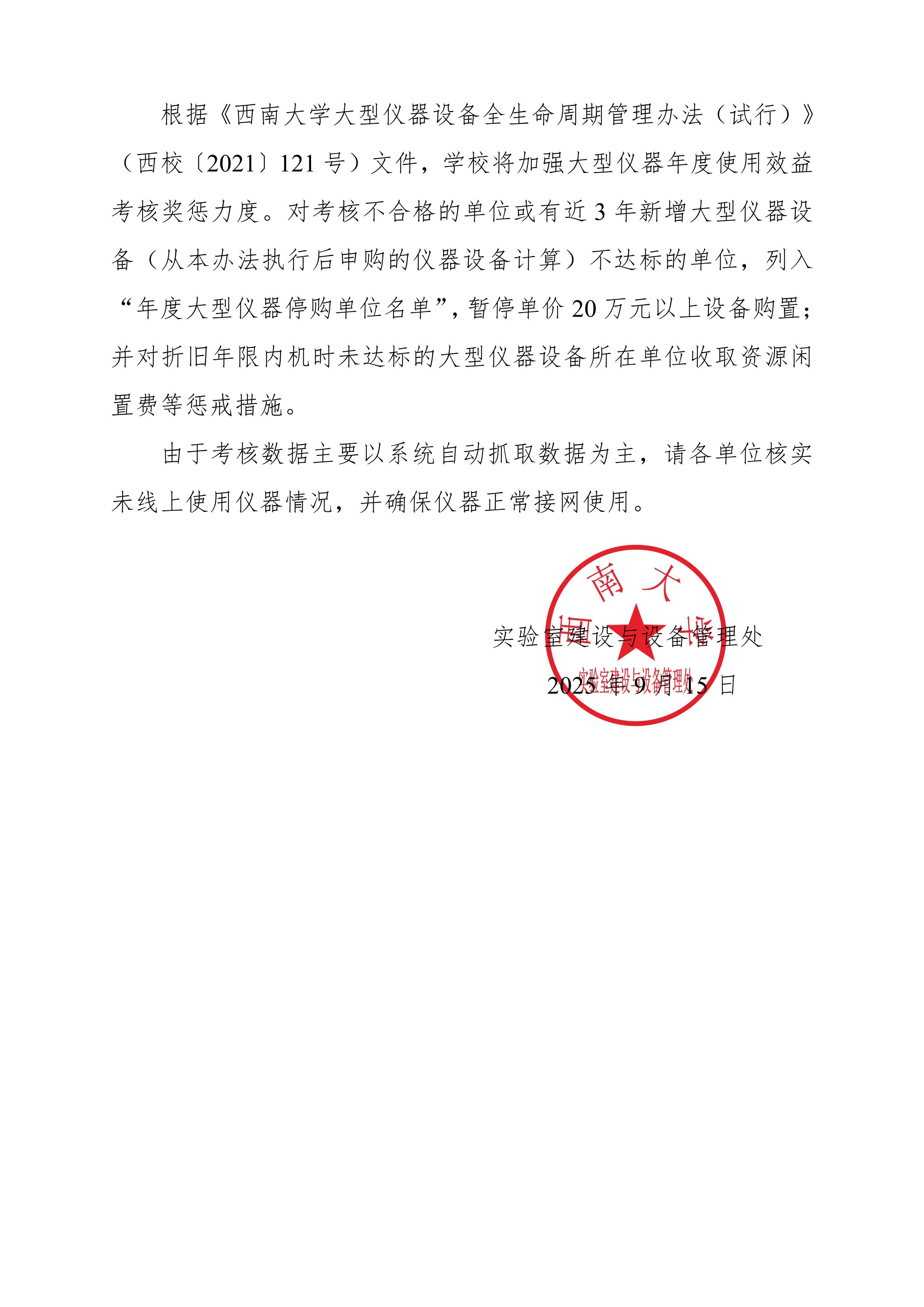 2025年5月大型仪器设备使用情况简报-西大实设〔2025〕46号