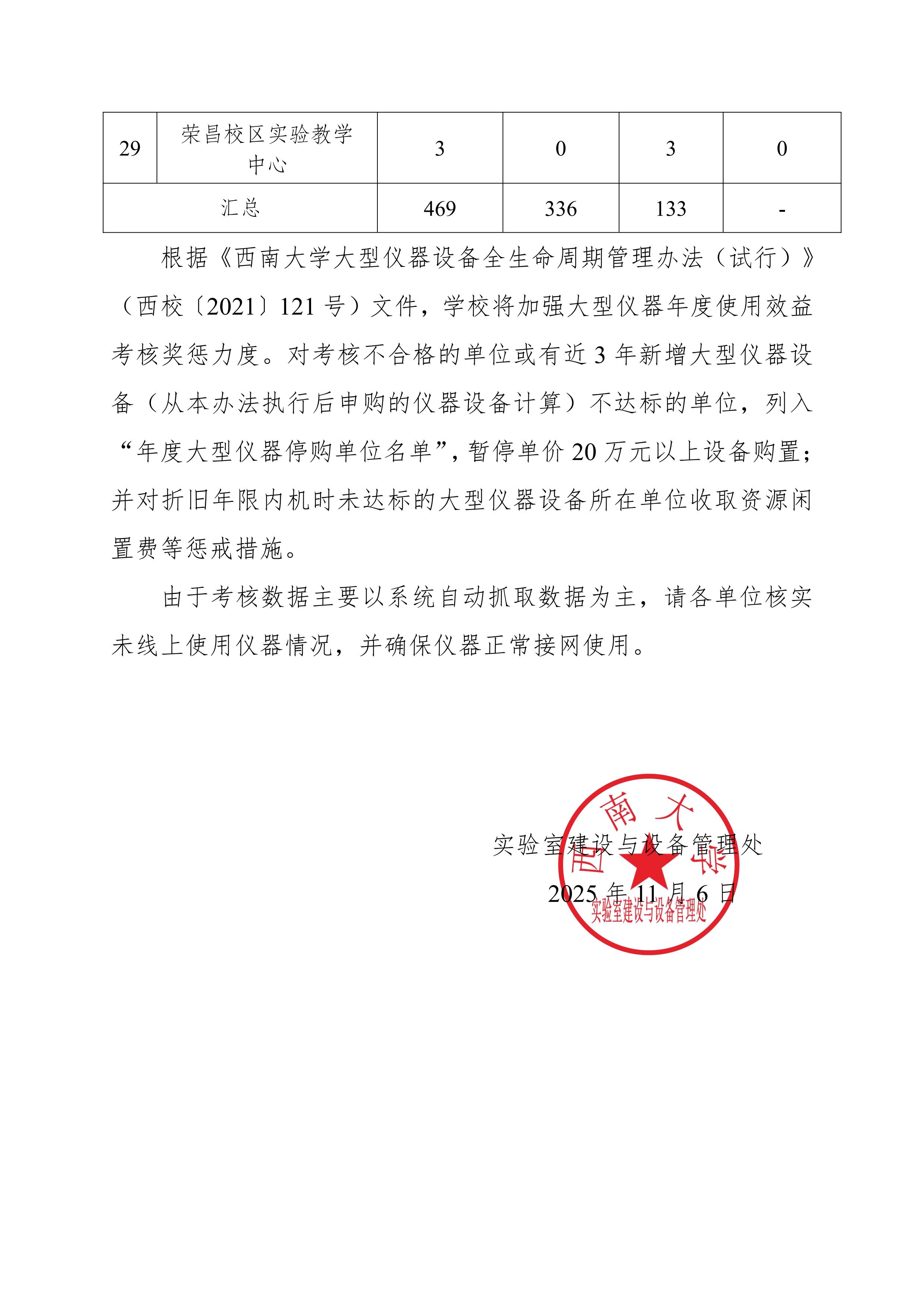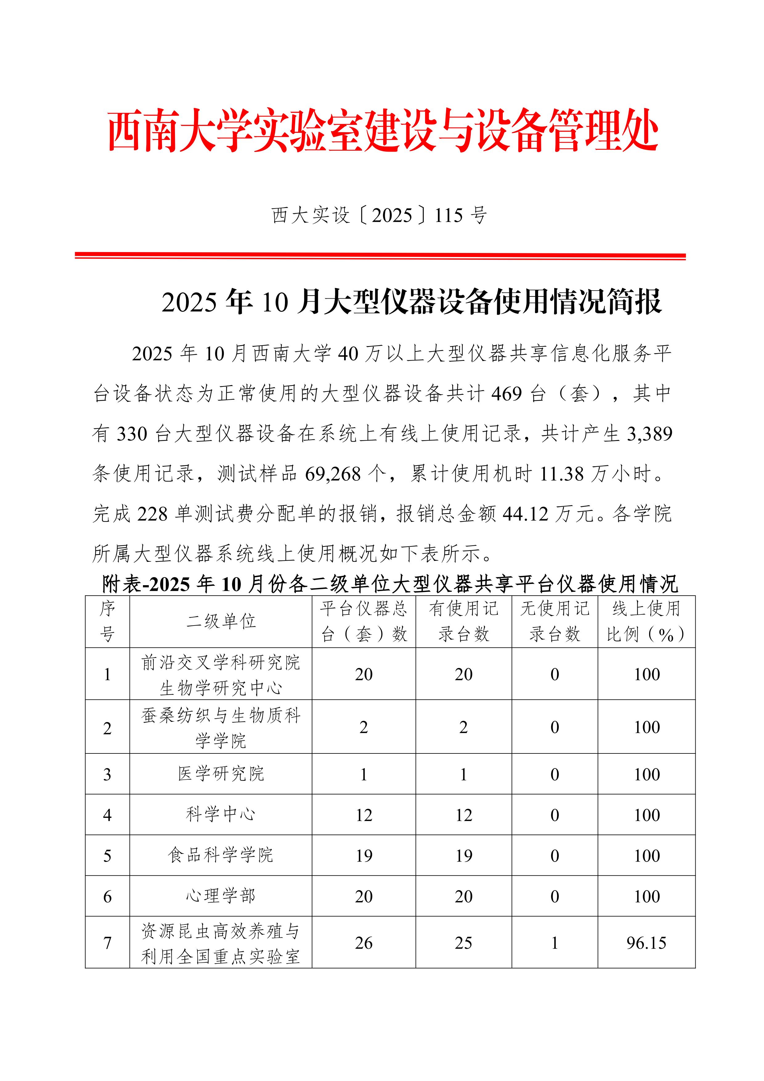 2025年10月大型仪器设备使用情况简报-西大实设〔2025〕115号