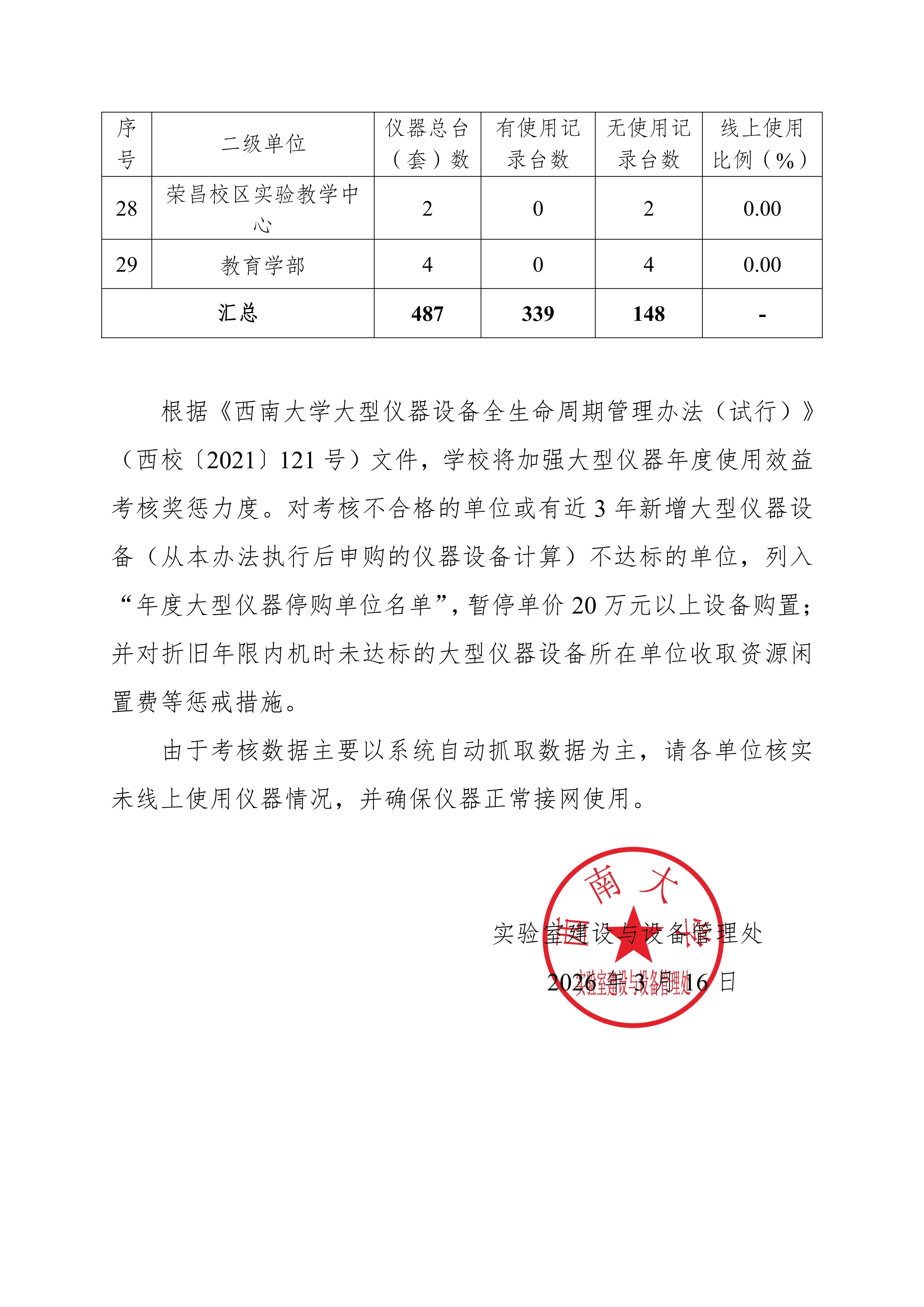 2025年12月大型仪器设备使用情况简报-西大实设〔2026〕7 号