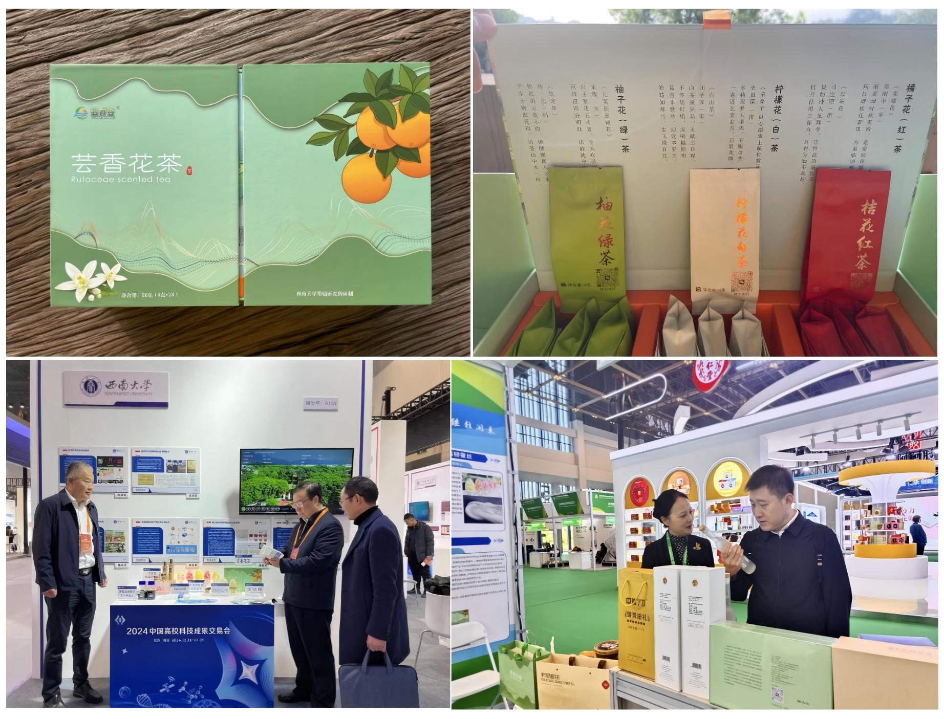 技术应用是科研价值实现的关键环节。王珺团队积极推进“研-产”闭环建设,推动科技成果落地转化。2024年5月,团队成功开发“芸香花茶”礼盒产品,包含柚花绿茶、柠檬花白茶、柑桔花红茶三个品类,属国内首创,该产品作为西南大学代表性科技成果多次参展。