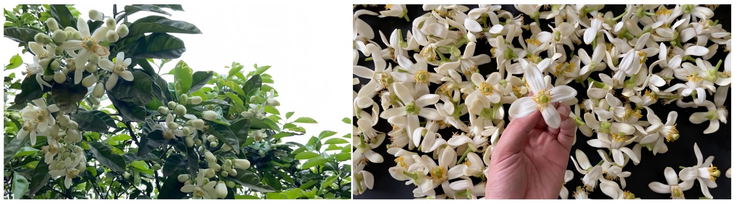 在此背景下,王珺及其团队聚焦柑桔花这一长期未被有效利用的资源。研究显示,成年柑桔树年均开花量可达数万朵,但坐果率不足5%,大量花朵自然脱落,既消耗树体养分,又未产生经济价值。该团队指出,柑桔花香气清雅,富含芳樟醇、橙花叔醇等功能性成分,具备安神舒缓、缓解疲劳的潜在功效。同时,其花期与茉莉花、栀子花等主流花茶原料错开,资源供给稳定,具有独立开发基础。
