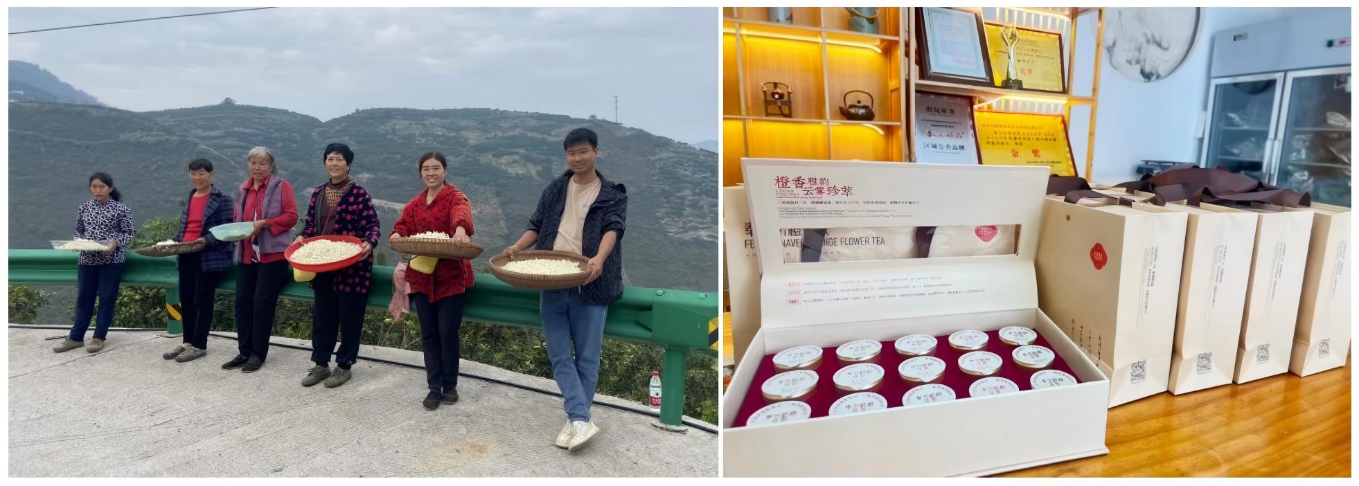 2025年5月,团队进一步推出奉节脐橙花茶小罐装礼盒,融合“奉节香山贡茶”与“奉节脐橙”两大地理标志产品优势,打造区域特色新品类,助力“种植+加工+文旅”一体化发展模式探索。